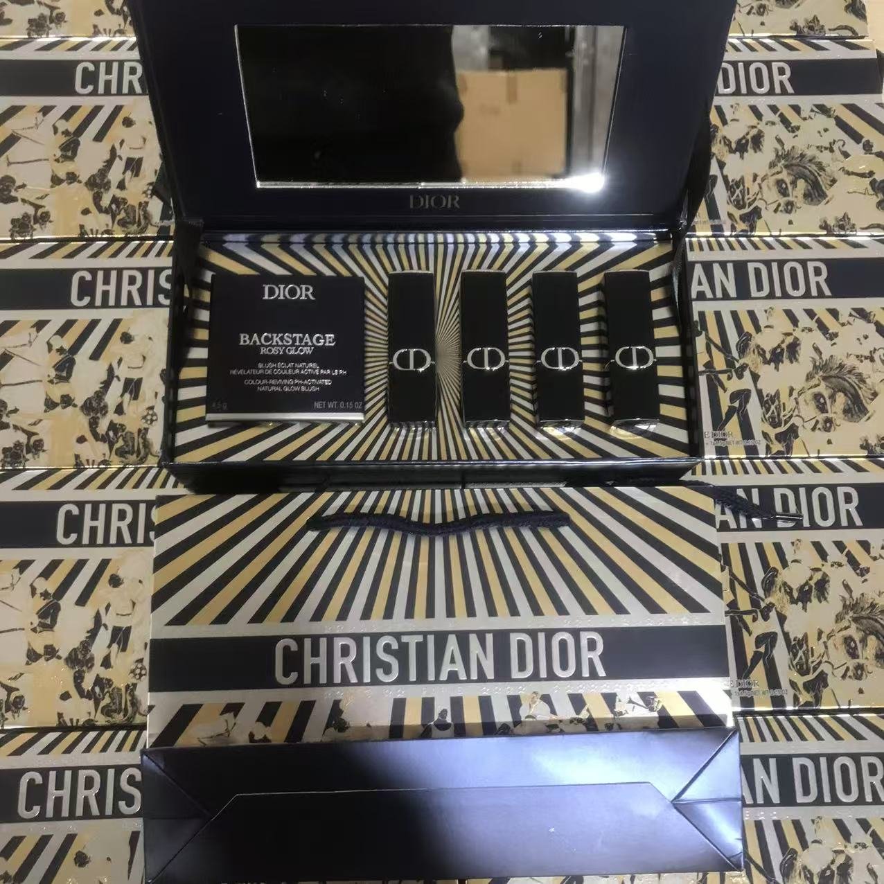 迪奥单色腮红一拖四套装荣耀版 正装001#4.5g 小样蓝金口红1.5g*4 丝绒720# 772# 888# 999# 配礼袋+中文标 打36 件72